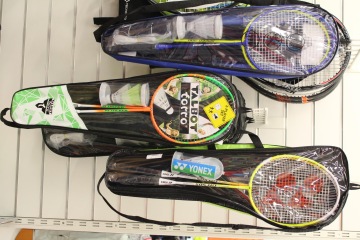 Míče, tenisové rakety a další